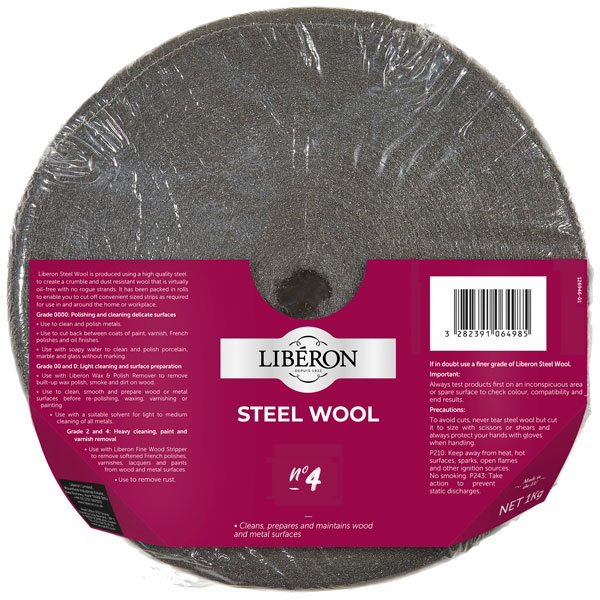 Liberon Steel Wool is of the highest quality and is chosen and recommended by craftsmen around the world. Produced using a high quality steel to create a crumble and dust resistant wool that is virtually oil-free with no rogue strands. Available in 5 grades: extra fine grade 0000 ideal for polishing and cleaning delicate surfaces, a range of fine to medium grades 00 and 0 ideal for light cleaning and surface preparation, and medium to coarse grades 2 and 4 ideal for heavy cleaning, paint and varnish removal.