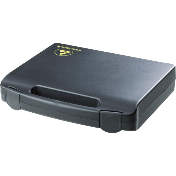 Easily portable carrying case from Licefa , made from conductive black plastic and designed to hold ESD sensitive components etc.