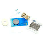 These new Light Stitches Soft Switch Kits are a development of our best selling conductive thread kits. This version includes an extra self-adhesive pad which allows the user to make a reliable switch which can then be incorporated into a textiles project to turn on the two yellow LEDs.