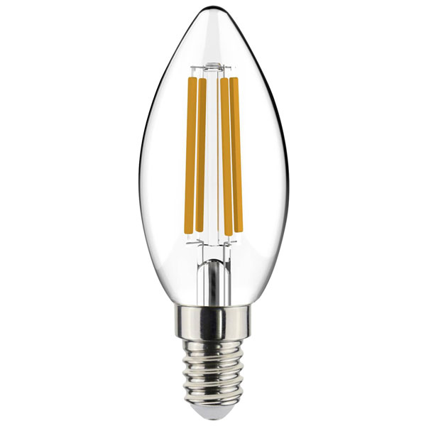 LightMe manufactures the LM85931, a LED bulb that is candle-shaped and monochrome. This energy-efficient LED bulb is rated at 4.5 watts, equivalent to a traditional 40-watt bulb, and emits a warm white light. Ideal for chandeliers and decorative fixtures, it measures 35 mm in diameter by 97 mm in height and comes in a pack of five.