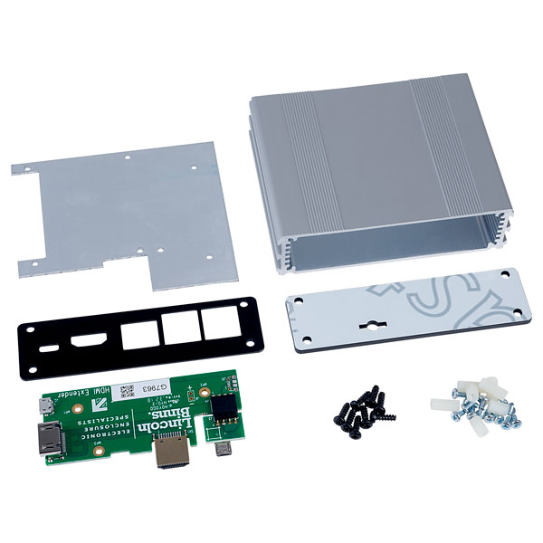 This Pi-Box Pro includes extender boards which plug into the Pi to align HDMI and Micro USB sockets at one end. The Pi-Box Pro can then be mounted to virtually any surface, using accessories including lugs, brackets and DIN rail clips, to make the Pi itself easily accessible.