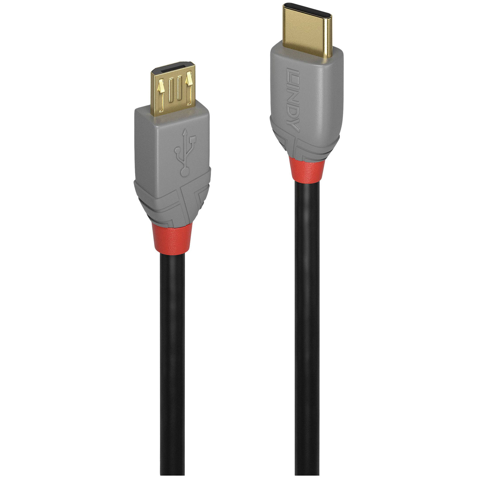 LINDY 36891 USB 2.0 Cable USB-C to Micro-B 1m Black Grey