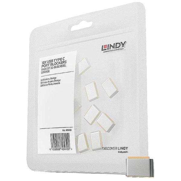LINDY 40440 USB-C Socket Lock Set Orange No Keys For Pc & Laptop Security
