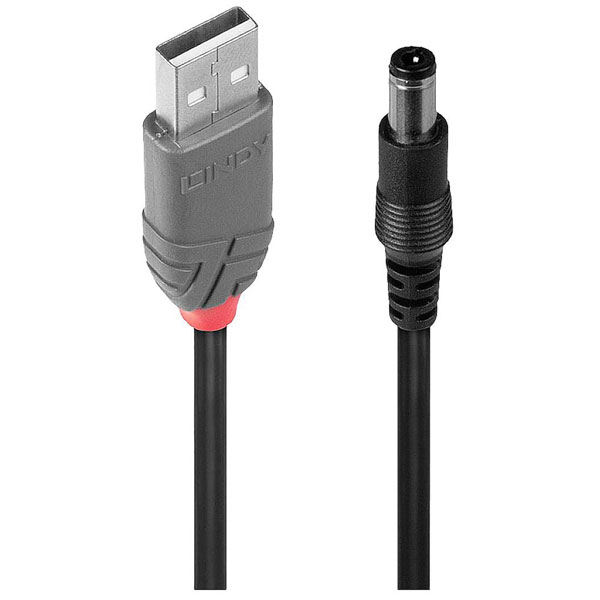 LINDY 70267 USB 2.0 cable USB-A to 5.5mm DC plug Black 1.50m