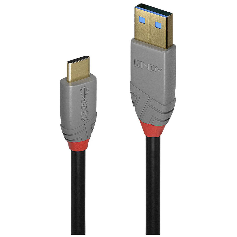 LINDY 36912 USB Cable USB 3.2 Gen 2 USB-C to USB-A 1.5m Black Grey