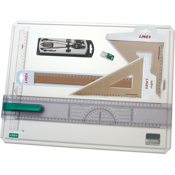 The A3 Student Drawing Board (Saver Bundle) from LINEX is a cost-saving drawing bundle including drawing board, set squares, ruler, compass and eraser.