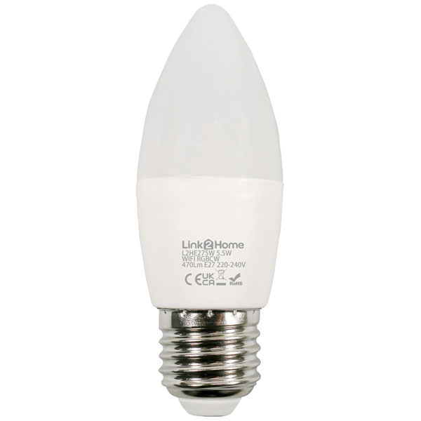 The Link2Home Wi-Fi LED Opal Candle Dimmable 5.5W bulb has a 470 lumen output, equivalent to a traditional 50W bulb.