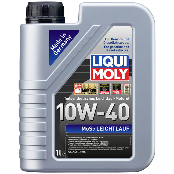 Liqui Moly 1091 is an engine oil known as MoS2 Leichtlauf 10W-40, designed for optimised engine performance and reliability. Formulated with a high-quality mineral oil base, it incorporates molybdenum disulfide (MoS2) for enhanced lubrication and reduced friction, thus promoting smoother operation and extended engine life. This lubricant is particularly suitable for use in petrol and diesel engines, including those with turbocharging and catalytic converters. Its 10W-40 viscosity grade ensures excellent performance across a range of temperatures, making it ideal for varied automotive and light-duty engine applications. Engineered to meet the demands of modern engines, this product also boasts a balanced additive package that protects against wear and deposits.