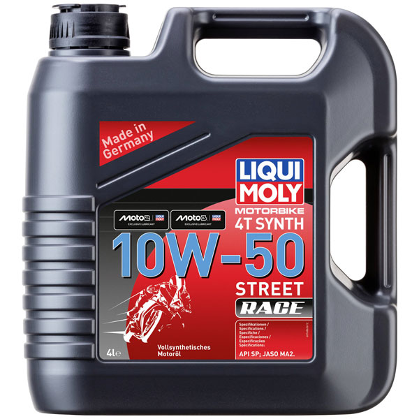 Liqui Moly 1686 Motorbike 4T Synth 10W-50 Street Race 4-litre engine oil is a high-performance lubricant formulated specifically for 4-stroke motorbike engines. This fully synthetic oil provides excellent shear stability, thermal stability, and resistance to oxidation, making it ideal for high-speed and high-temperature environments encountered in street racing. With its advanced formulation, it ensures optimal lubrication, reducing wear and extending engine life even under extreme conditions. Commonly used in racing motorcycles and high-performance street bikes, this oil meets the stringent requirements of modern engine technology, offering reliable protection and performance for demanding engineering applications.