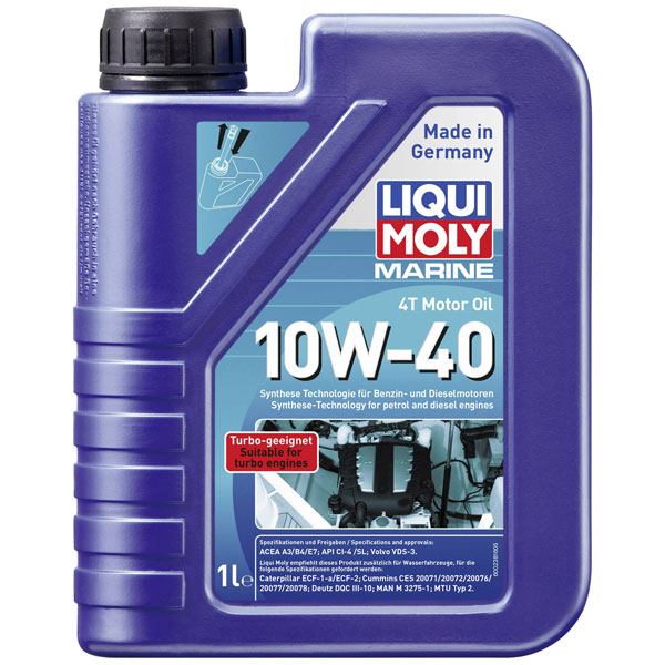 Liqui Moly manufactures Marine 4T 10W-40, a high-quality engine oil specifically designed for 4-stroke engines. This lubricant ensures optimal engine protection and performance in marine environments. It is ideal for use in various watercraft, offering reliability and efficiency.