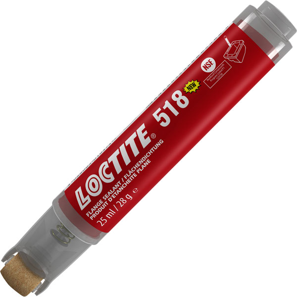 The new LOCTITE® 518 pen combines the leak-fighting properties of 518 Flange Sealant with a roll-on applicator that makes applying a liquid flange sealant easier than ever, with no waste and no mess.