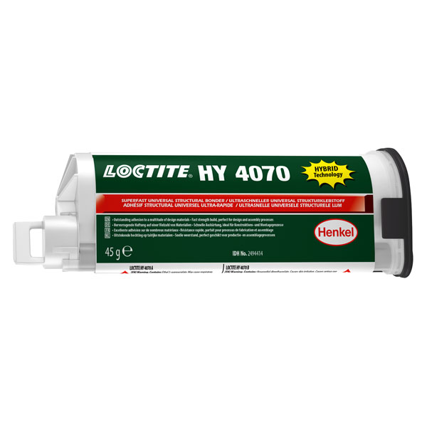 LOCTITE® HY 4070™ is a two-part, hybrid adhesive that provides a fast fixture at room temperature and bonds gaps up to 5mm (0.2in). It has excellent bonding characteristics with a variety of substrates including metals, rubbers and some plastics.