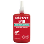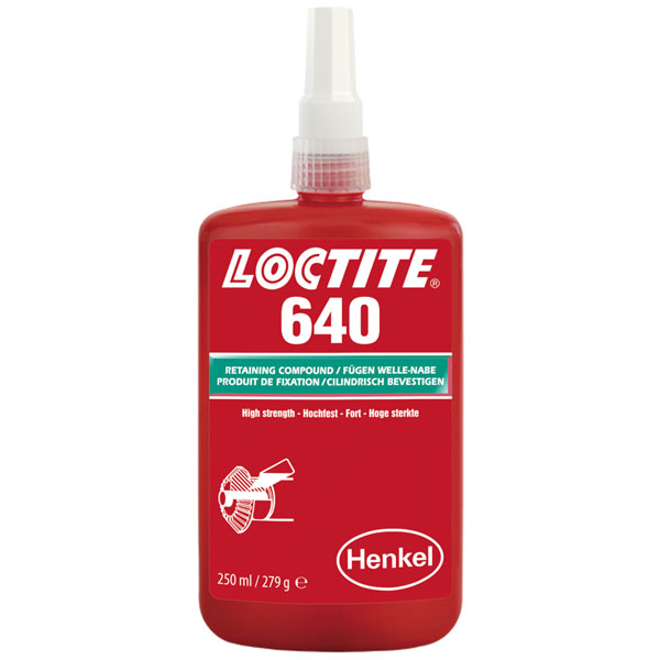 LOCTITE 640 is a green, anaerobic, low viscosity, methacrylate ester-based retaining compound ideal for large diameter components and active metals such as brass which require a longer positioning time.