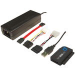 This USB 2.0 to IDE and SATA Adapter from LogiLink® has been designed to allow the connection of SATA and IDE hard drives and ATAPI drives via the USB 2.0 port of a PC. Equipped with both a 2.5in and 3.5in IDE and SATA hard disk connector to match the outlet, the AU0006C adapter also features an OTB (one touch backup) so that data can be backed up with ease. Included are USB A male, 3.5in HDD/40-pin female, 2.5in HDD/44-pin female and SATA connectors.