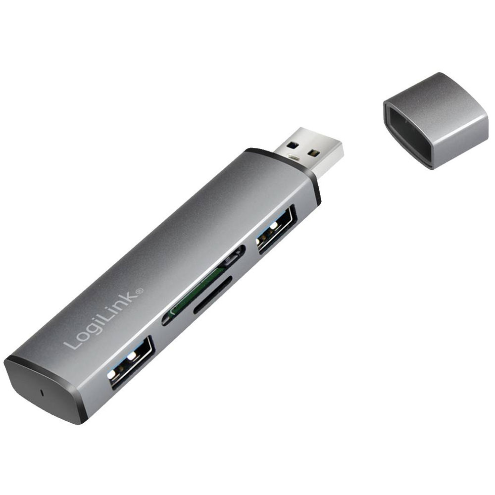 LogiLink UA0394 USB 3.2 Gen2 hub aluminium grey SD reader LED indicator