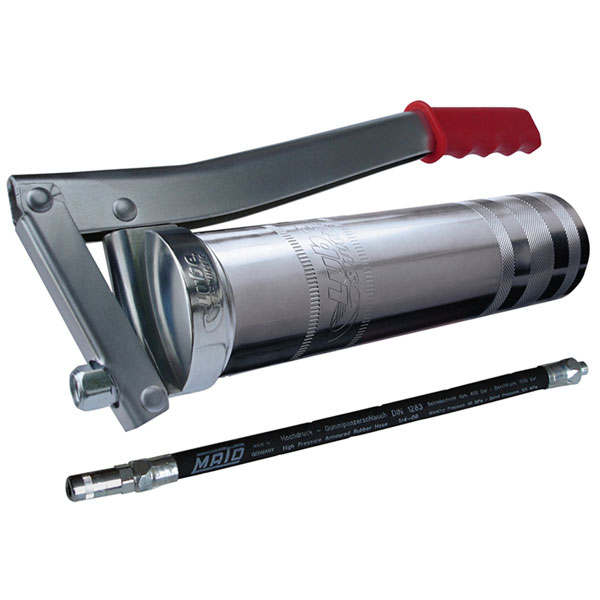 The Lumatic Lube-Shuttle® Side Lever Grease Gun for use with Lube-Shuttle 400g cartridges. Features a high quality zinc plated steel barrel body and an ergonomic hand grip. It is environmentally friendly with tool free cartridge opening via a screwcap, making the cartridge reusable. The design provides optimum use of all grease in the cartridge with fast, clean loading and unloading without opening the gun.