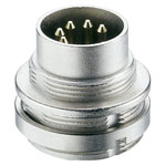 A front panel mounting male DIN plug with threaded joints and solder terminals.