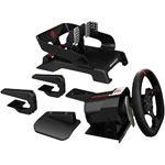 Delivery includes: Removable wheel face, wheel base unit, pedal base unit with retractable carpet gripper, removable pedal cowling with mounting hardware, 2x desk clamps, 2x removable lap rests with mounting hardware, multi-region DC power supply and Allen key.