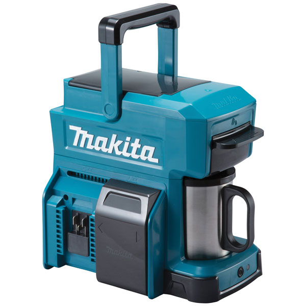 The Makita DCM501 Cordless Coffee Maker is compatible with 60mm coffee pods as well as ground coffee. Its boil dry protection function prevents the machine from burning out: if water empties and temperature inside increases, the sensor will turn off power supply automatically.