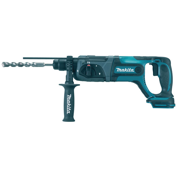 The Makita DHR241 SDS Plus Rotary Hammer has 3-modes of operation: Rotary drilling, Hammer drilling or Chiselling. Fitted with a conveniently located push button for forward and reverse.