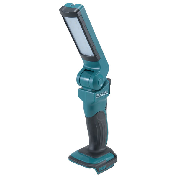 The Makita DML801 LXT LED Flashlight has 12 extra bright LED'S providing up to 240 lumens. Its head folds up and down with 7 positive stops and rotates left to right for multiple lighting angles. The rubber coating on the handle ensures a firm working grip. A battery protection system automatically shuts off power when the battery level is low.