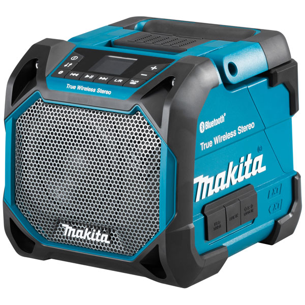 The Makita DMR203 Bluetooth® Jobsite Speaker runs on both an AC adaptor and Makita Li-ion batteries. True Wireless Stereo (TWS) technology allows the user to wirelessly pair two DMR203 speakers via Bluetooth® to enjoy a deep, rich and powerful stereo sound.