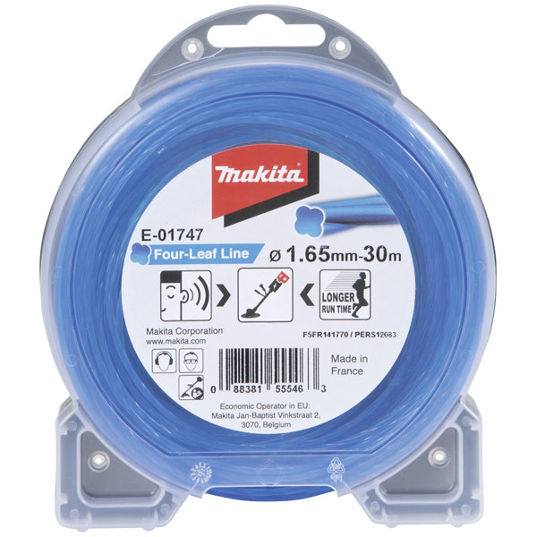 Makita E-01747 Replacement Filament Grass Trimmer Accessory, also identified as 3349590 - Makita E-01747, is a meticulously engineered component designed for optimal performance in grass trimming applications. This product features robust filament construction, providing enhanced durability and precision cutting capabilities necessary for maintaining lawn edges and garden aesthetics. Engineered for compatibility with a wide range of Makita trimmers, the E-01747 ensures efficient power transmission and minimal wear, thereby prolonging the lifespan of the equipment. Typically utilised in residential and professional gardening, this accessory enables accurate trimming in various terrains and vegetation density, supporting both light and heavy-duty tasks with consistency and reliability.