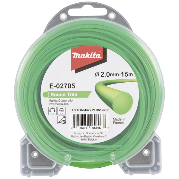 Makita E-02705, also known under the alternate description 3349556 - Makita E-02705, is specifically designed as a replacement filament for grass trimmers. This product is engineered to provide optimal cutting performance, combining high durability with efficient filament management to ensure consistent trimming results. The filament's robust construction is tailored to withstand demanding usage in residential and commercial landscapes, making it suitable for engineers focused on maintaining vegetation areas with precision. Its compatibility with a range of Makita trimmers enhances versatility, making it an essential accessory for the upkeep of lawns, gardens, and parklands.