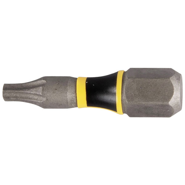 The Makita E-03193 bit set includes a single Torx bit, model T10. Known for durability, this bit is suitable for high-precision fastening tasks. It is ideal for professional or DIY applications that require secure Torx screw engagement.