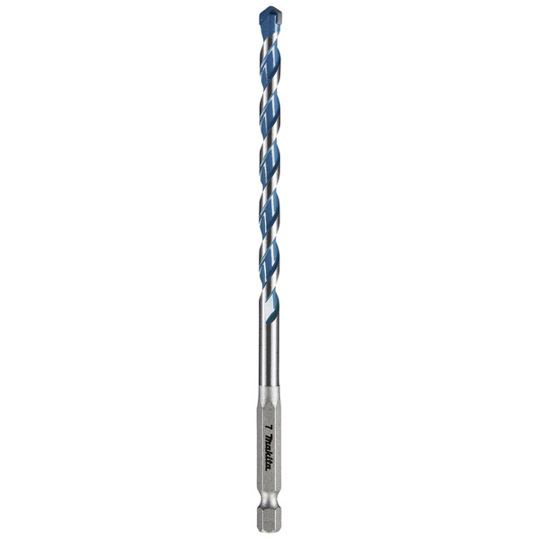 Makita's E-15039 Multi-purpose drill bit features a 7mm carbide tip and a 150mm total length, designed for universal application. It includes a 1/4" hex shank for easy compatibility with various tools. Ideal for drilling into metal, wood, and plastic, this versatile tool is perfect for both professional and DIY projects.
