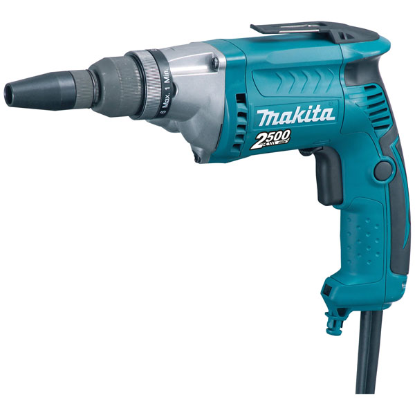 The Makita FS2700 Torque Adjustable Drywall Screwdriver is well balanced for easy handling and manoeuvrability, It also features a lightweight aluminium gear housing for durability, giving the best possible tool body for screwdriving. With a one-touch locator, a more durable belt clip and an LED job light.