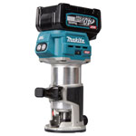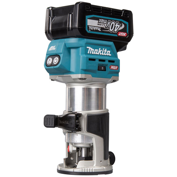 The Makita RT001G XGT 40Vmax Router Trimmer can be used to cut grooves or decorative trimmings in wood. Its brushless motor and soft start function provides smooth start-ups, preventing damage to work material. Constant speed control automatically applies additional power to the motor to maintain speed under load to complete the most challenging jobs.
