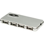 This hi-speed micro hub from Manhattan has an ultra-compact design which can add four ports to any USB-enabled PC or laptop for connecting keyboards, mice, webcams or other devices at transmission speeds of up to 480 Mbit/s. The accompanying power pack ensures an adequate power supply, even at full load.