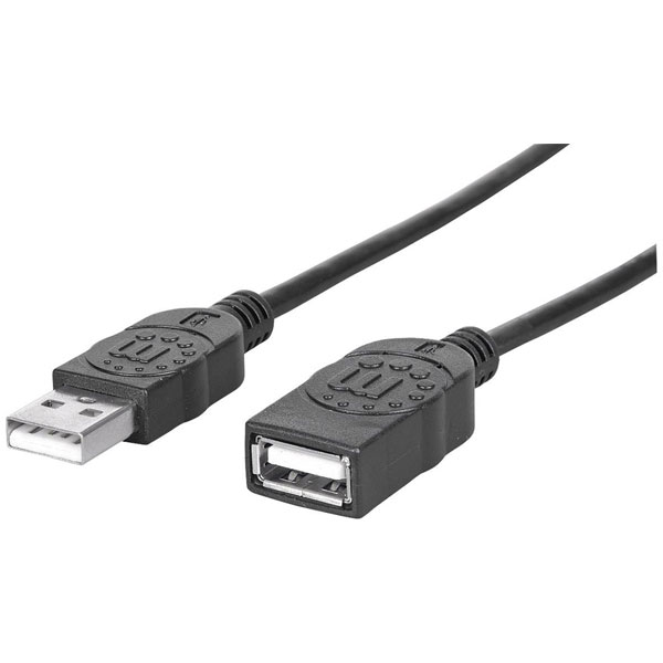 Manhattan 308519 USB cable USB 2.0 A plug to socket 1m Black Metal foil shield