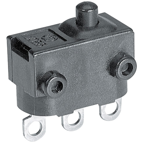 A microswitch from Marquardt with compact design and dust- and water-protected switching system. Modular design with a large variety of connections additional actuators and fixing methods. Snap/quick break switch (momentary function).
