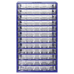 The MARS Svratka workshop depot features a metal frame with dimensions of 307 x 155 x 551 mm and contains 60 fixed compartments for optimal organisation. It is designed as a robust storage rack for small parts and component accessories. This organiser box is ideal for arranging components in workshops or storage facilities.