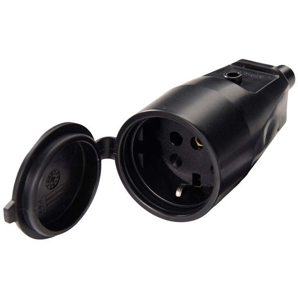 Martin Kaiser 552/sw Safety Mains Socket 250V Black IP44 Type F Bend Relief