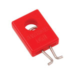 A red isolation lock for use with MCBs on domestic and industrial distribution boards for isolation purposes where access is restricted.