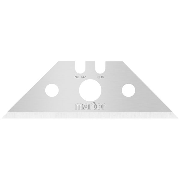 Martor produces the 142.70 spare blade, featuring a trapezoidal shape suitable for retractable knives. The blades are made with precision for durability and come in packs of 10 pieces. They are ideal for various cutting tasks in both industrial and domestic settings.