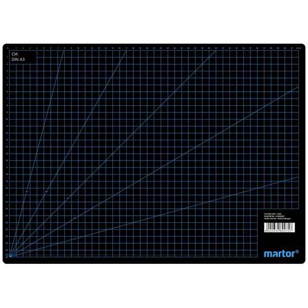 Martor manufactures the cutting pad model 3003.06, measuring 440 mm in length and 320 mm in width. This black cutting pad provides a durable surface for precision cutting tasks, protecting underlying surfaces. It is typically used in crafting, design studios, or any setting requiring accurate cutting operations.