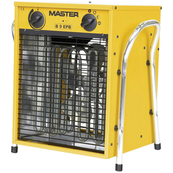 The Master Klimatechnik B-9IT is an industrial heater available in 4500 W and 9000 W models, featuring a robust yellow and black design. It is an electric heater well-suited for large, demanding environments requiring significant heat output. Typical applications include warehouses, construction sites, and workshops where efficient and consistent heating is essential.