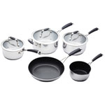 The complete cookware set! With 3 sauce pans in a variety of sizes, a sauté pan and a milk pan, this set is everything you need to kickstart your stylish new professional looking kitchen. The sauce pans have toughned clear glass lids whilst all pans featuring a premium double layer Quantum II non-stick coating and riveted stainless steel cast handles, this set is built for durability and performance.