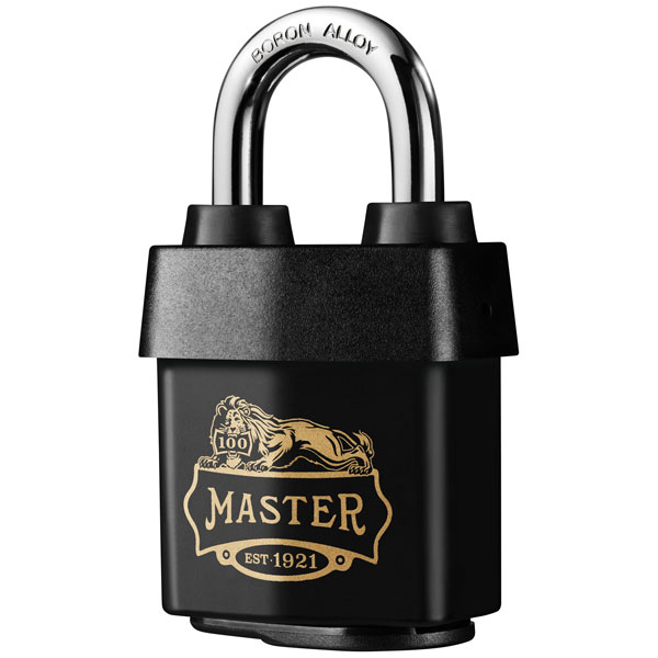 The Master Lock 1921 Laminated Steel Padlock offers better resistance against impact and hammering. Fitted with a hardened boron alloy shackle for superior cut resistance. Its 4-pin cylinder prevents picking attacks and its dual ball bearing locking mechanism offers better resistance against pulling and prying attempts. Fitted with an exclusive cover adorned with the brand's emblematic lion. The cover helps to protect the padlock from harsh elements.