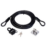 MasterLock Garden Security Kit is made up of a braided steel cable, weather tough padlock and anchor point. Use the cable to link through several items, pass through the anchor point and lock with the padlock.