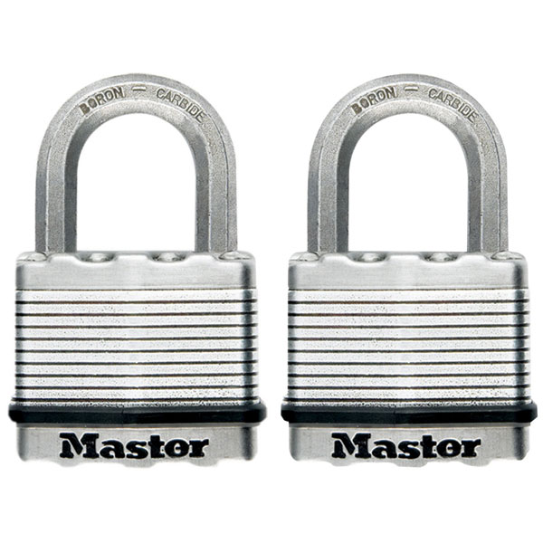 The Master Lock Excell™ Laminated Steel Padlocks are made with cutting edge technology to deliver unprecedented security. They feature tough cut patented octagonal boron carbide shackles which are 50% tougher to cut than hardened steel, and dual ball bearing locking mechanisms for maximum pry resistance.
