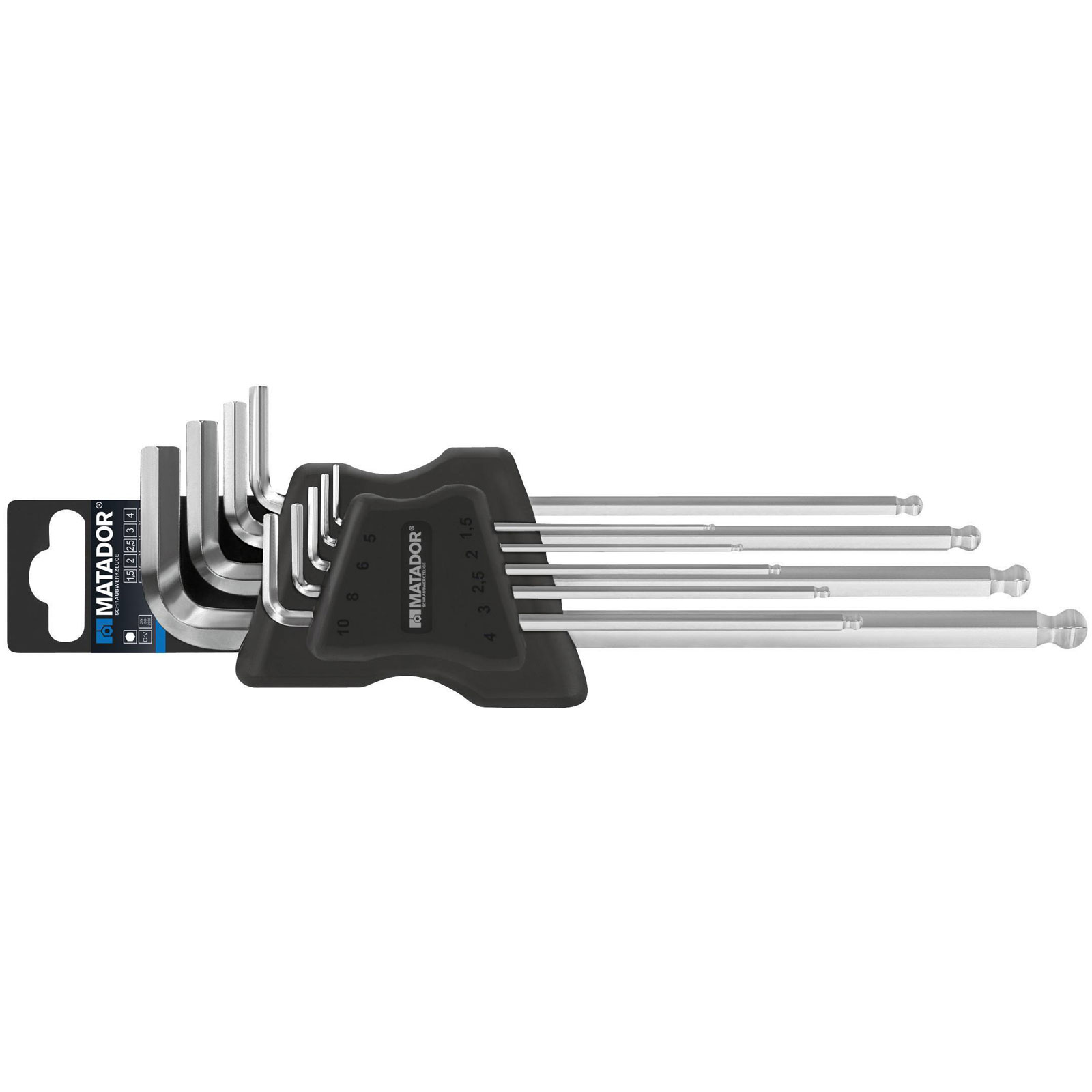 Matador 04429091 Allen Key Set 9Piece Long Hex/Ball Head Matt Chrome Vanadium