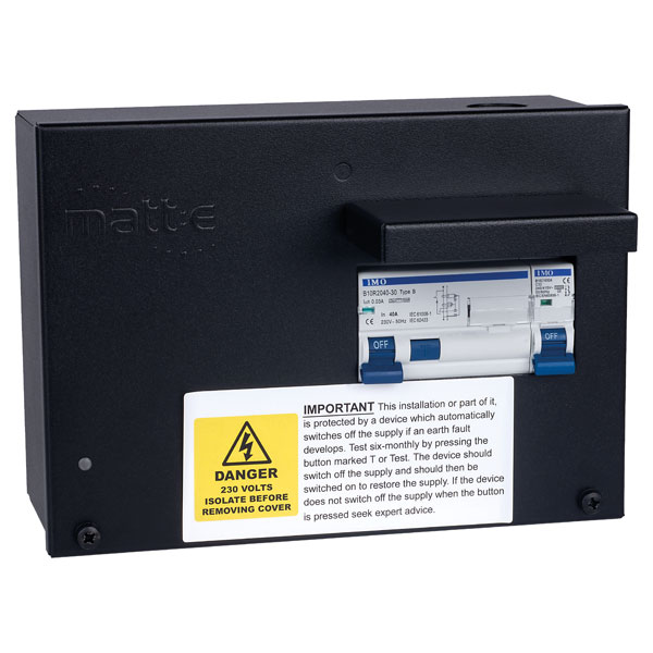 The SP-EVCP-B from matt:e is a simple single connection unit, that allows for the connection of 1x 32A single-phase charge point to the existing PME earthing facility.