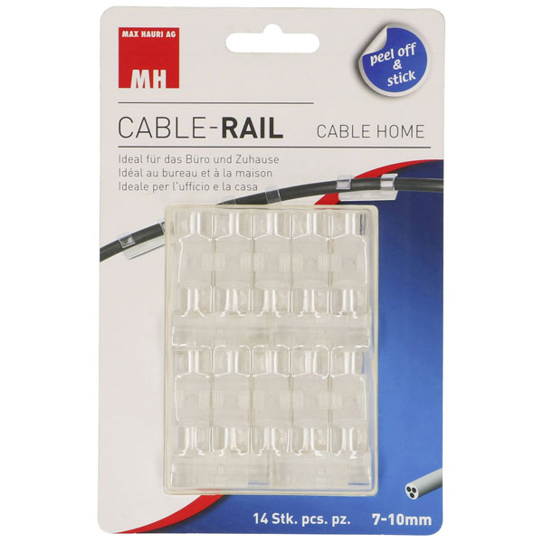 The Max Hauri 164657 Clip is a self-adhesive cable mount designed for managing cables with a maximum diameter of 10 mm. Packaged in a set of 14 pieces, these transparent clips are ideal for organising cable assemblies in homes or offices. This adhesive cable fastener provides a tidy and efficient solution for securing cables in various environments.