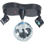 This LED mirror ball station will add fun and colour to any dance floors, stages, party room etc. Featuring two multicolour LED spotlights with four base LEDs, the mirror ball gently rotates, throwing dazzling circles of light into every corner of your room. It can be mounted on a desk or hung up with the built-in bracket. Authorised only for dry indoor use and to be powered by the included adaptor.