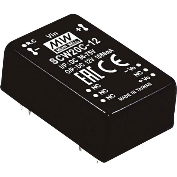 The Mean Well SCW20A-05 is a DC/DC converter module with a power rating of 20 watts and a current capacity of 4 amperes. It features a single output suited for efficient power conversion applications. Typical applications include use in telecommunications, industrial control systems, and electronic devices requiring stable voltage conversion.
